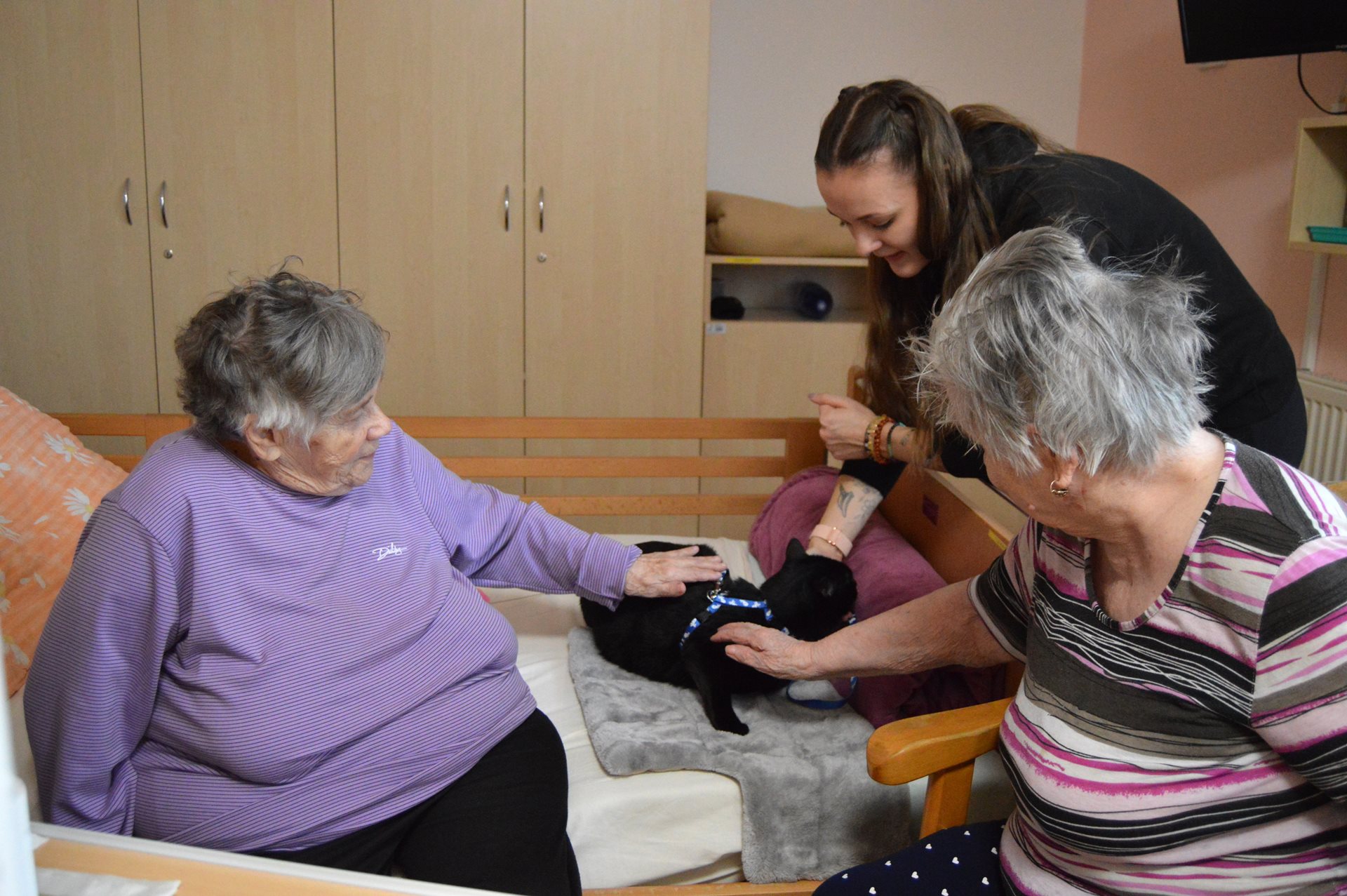 Dne 25. února navštívila naše uživatele paní Mertová se svou kočičkou v rámci felinoterapie. Setkání proběhlo v příjemné a klidné atmosféře a přineslo všem zúčastněným mnoho radosti. Klienti si mohli kočičku pohladit, pomazlit se s ní a strávit chvíle v její milé společnosti. Kontakt se zvířátky působí velmi pozitivně na náladu a pohodu našich uživatelů. Návštěvy zvířátek jsou u našich klientů vždy velmi oblíbené, a proto jsme za tuto milou návštěvu moc rádi. Paní Mertové děkujeme a budeme se těšit zase na příště.