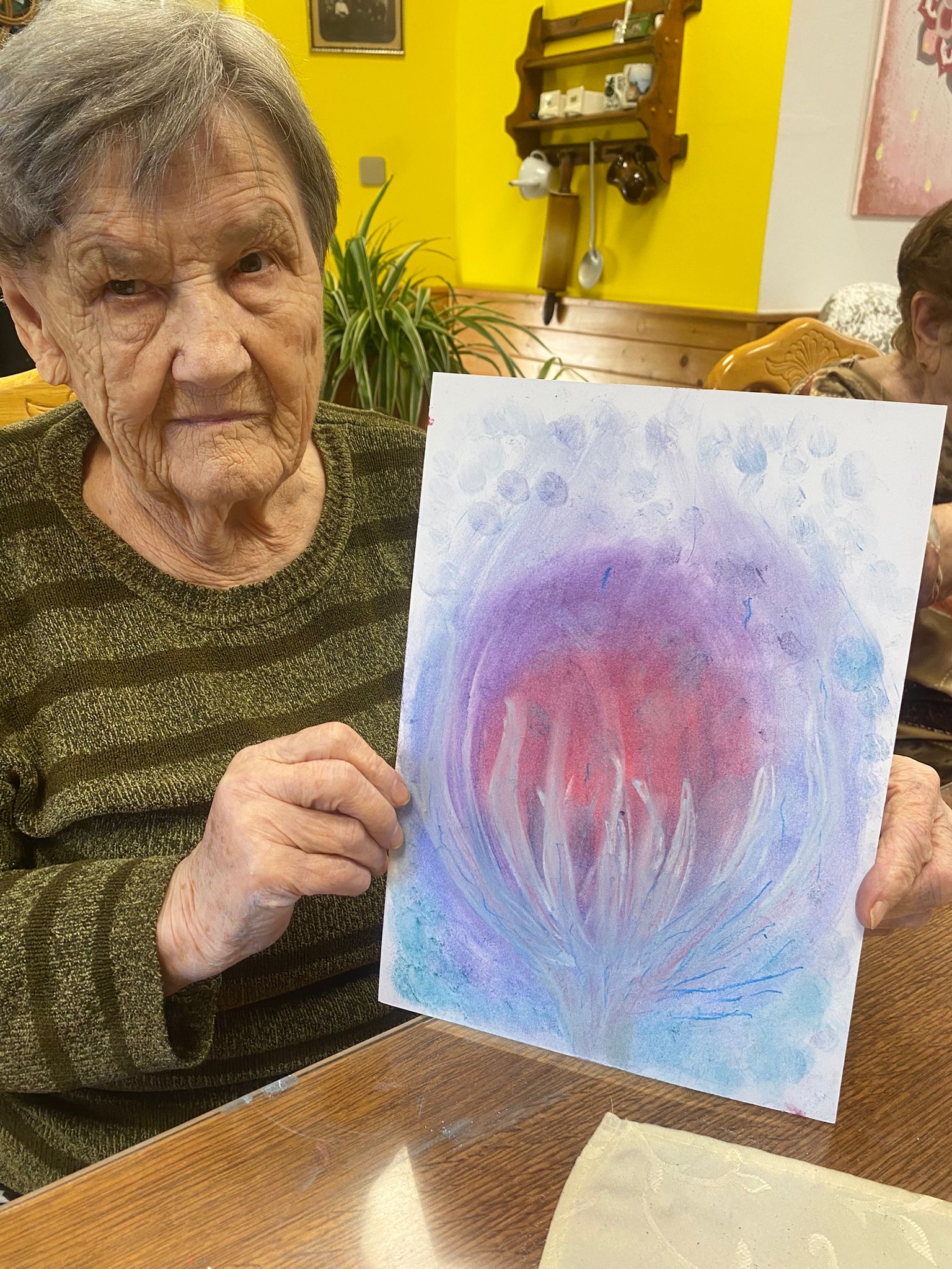 Ve čtvrtek 22. ledna jsme se sešly v kuchyni na Vile, kde proběhlo společné výtvarné tvoření. Klientky si vyzkoušely malování prsty a také práci se suchými pastely. Tato výtvarná technika je velmi přístupná a vhodná pro každého – nevadí ani to, pokud se někomu třesou ruce. Důležité je především radost z tvoření. Uživatelky měly možnost malovat podle vlastních nápadů a vybrat si barvy, které mají nejraději. Každá z nich vytvořila několik obrázků a během tvoření panovala příjemná a uvolněná atmosféra.