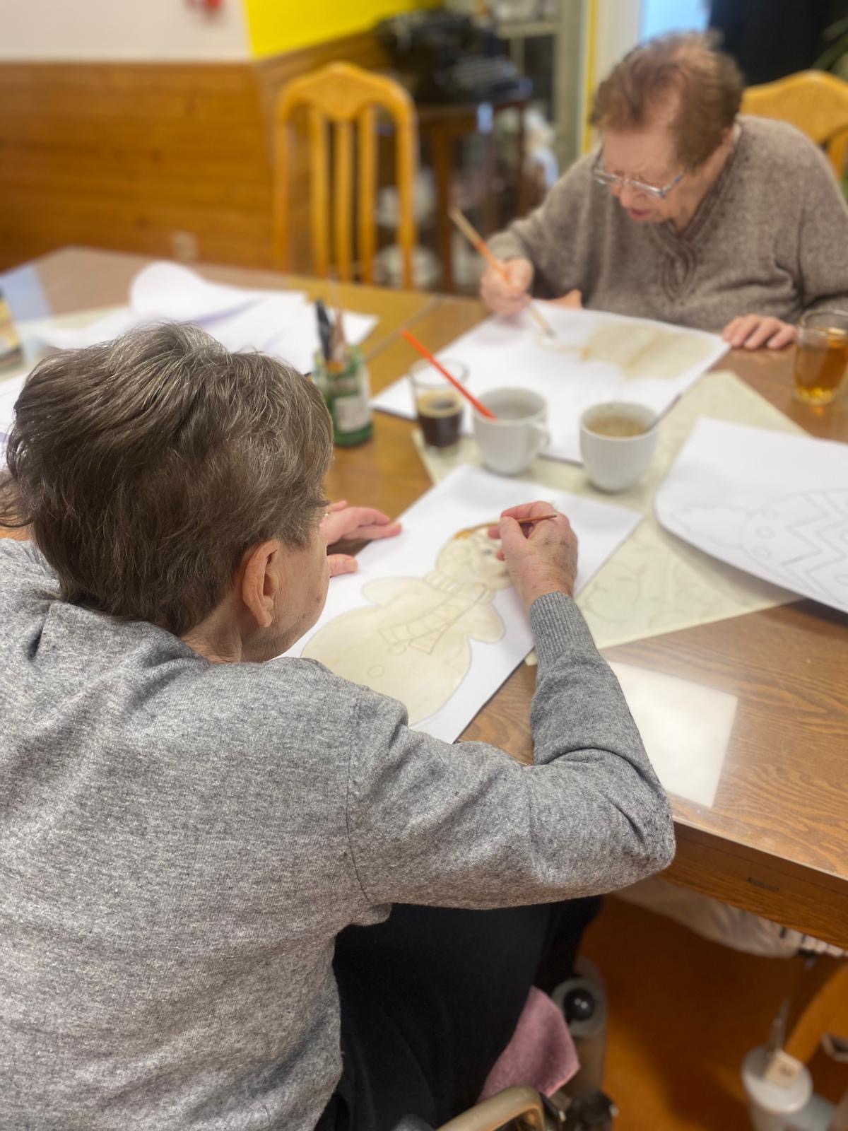 V pondělí 19. ledna se uživatelé sešli v jídelně na Vile, kde pro ně byl připraven netradiční výtvarný program – malování kávou. Na úvod jsme si společně povídali o kávě – odkud pochází, jak se pěstuje a zpracovává, než se dostane do našich šálků. Mnohé překvapilo, že káva nemusí sloužit jen k pití, ale dá se využít také jako zajímavý výtvarný materiál. Poté jsme se pustili do samotného tvoření. Pomocí různě silné kávy vznikaly na papíře krásné odstíny od světlých až po tmavé hnědé tóny. Každý si mohl vyzkoušet, jak kávu nanášet štětcem, jak ji ředit vodou a jak vytvořit různé efekty.