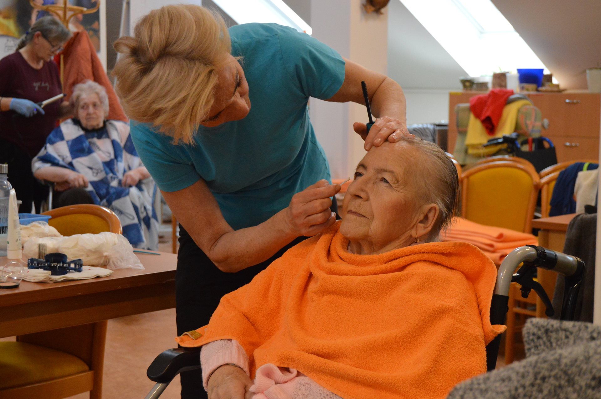 V pátek 8.3. čekalo naše uživatelky při příležitosti svátku MDŽ příjemné dopoledne v Tančírně spojené s akcí Vypadáš skvěle, kdy naše pracovnice uživatelky krásně nalíčí a učešou a pak jsou jako modelky vyfotografovány v naaranžovaném prostředí Domova. Uživatelkám to velmi slušelo. Vznikly tak krásné fotografie, které pak mohou darovat svým blízkým. Klientky si dopoledne velmi užily při drobném občerstvení a sklence vína. Každá také dostala z rukou paní ředitelky krásnou kytičku ke svátku.