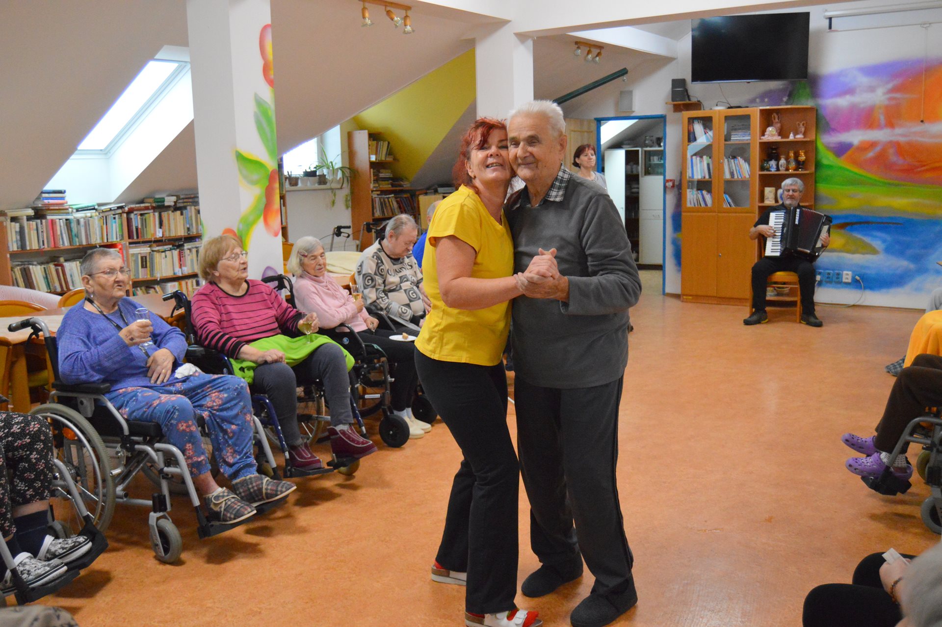 2.ledna jsme s uživateli oslavili na Tančírně Nový rok. Klienty přijel potěšit harmonikář pan Piskoř. Paní ředitelka uživatelům popřála do Nového roku vše nejlepší a společně přivítali rok 2026 slavnostním přípitkem. Uživatelé si užili společně příjemné dopoledne při poslechu známých písní. K tomu si dali sklenku dobrého vína, drobné občerstvení, zazpívali si a někteří i zatančili. Panovala dobrá nálada a příjemná atmosféra.