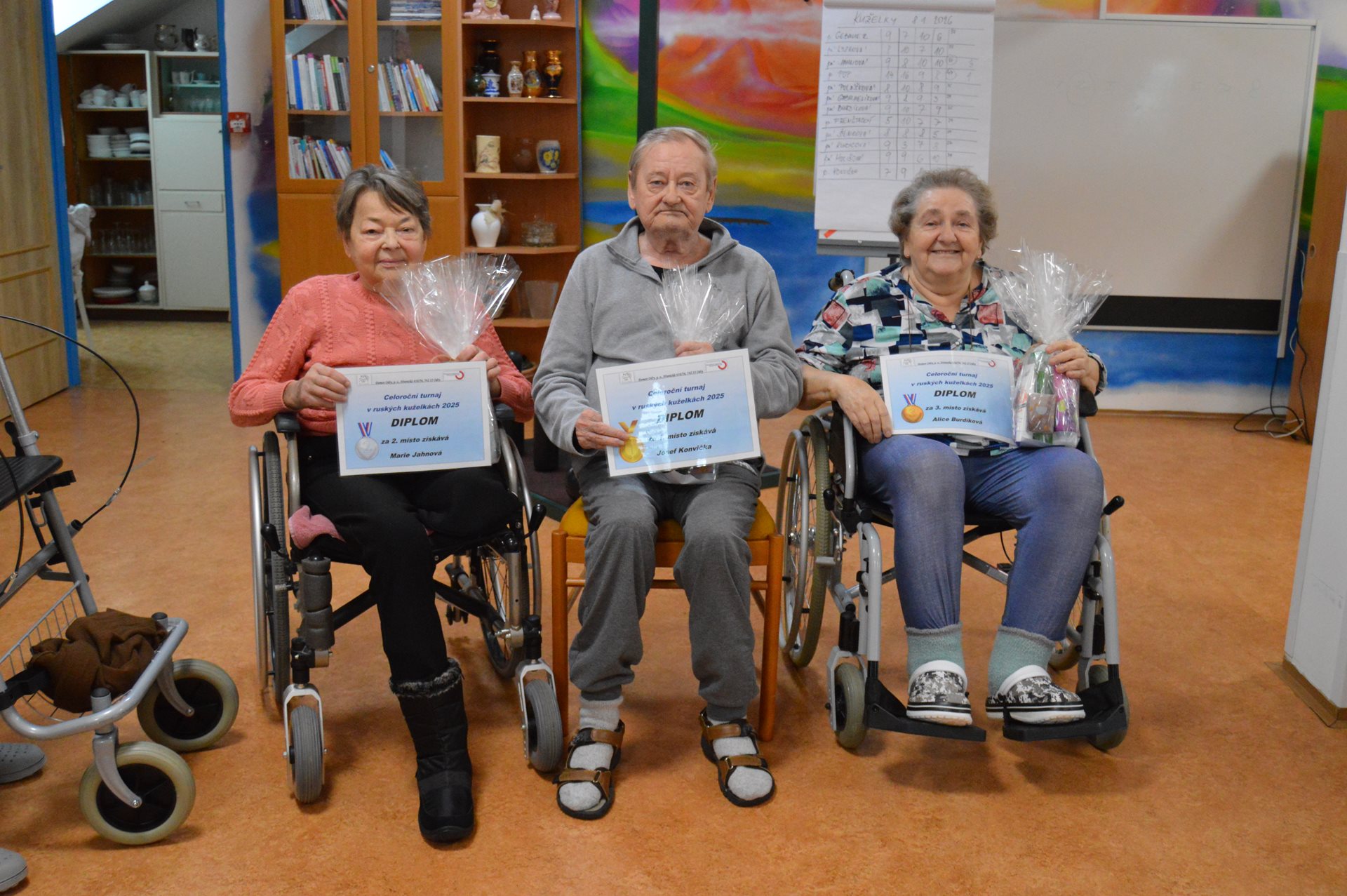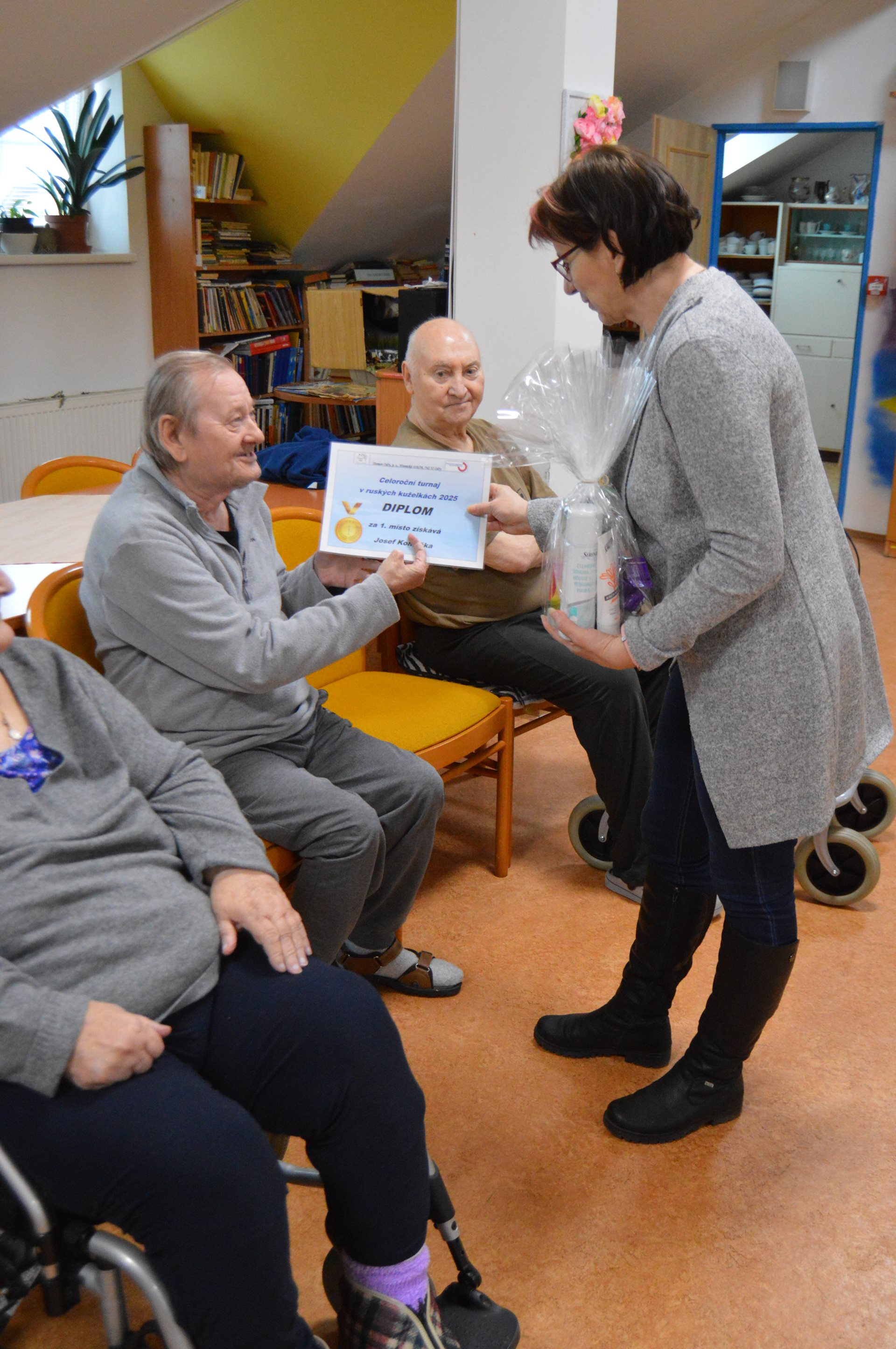 Dne 8.ledna jsme na Tančírně s uživateli odstartovali celoroční turnaj v ruských kuželkách pro rok 2026. Uživatelům se velmi dařilo. Po odehraném prvním kole turnaje jsme se přenesli zpátky do roku 2025, abychom vyhodnotili turnaj za minulý rok a vyhlásili vítěze turnaje. Paní ředitelka předala výhercům, kteří nahráli v turnaji za celý rok nejvíce bodů diplomy a dárkové balíčky. Ostatní účastníci turnaje obdrželi malou pozornost. Vítězem celoročního turnaje v ruských kuželkách 2025 se stal pan Konvička s 580 body, druhé místo obsadila paní Jahnová s 500 body a na třetím místě se umístila paní Burdíková s 496 body. Výhercům blahopřejeme a přejeme jim a všem ostatním hráčům mnoho štěstí ve hře pro letošní rok.