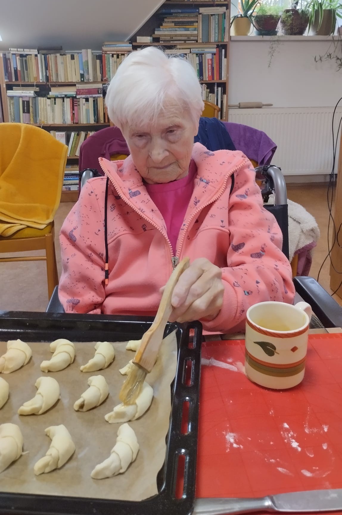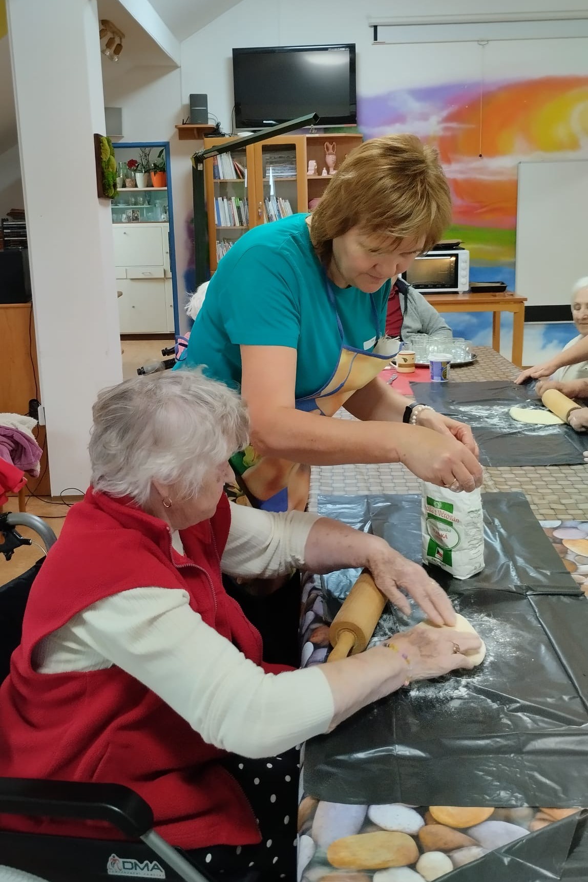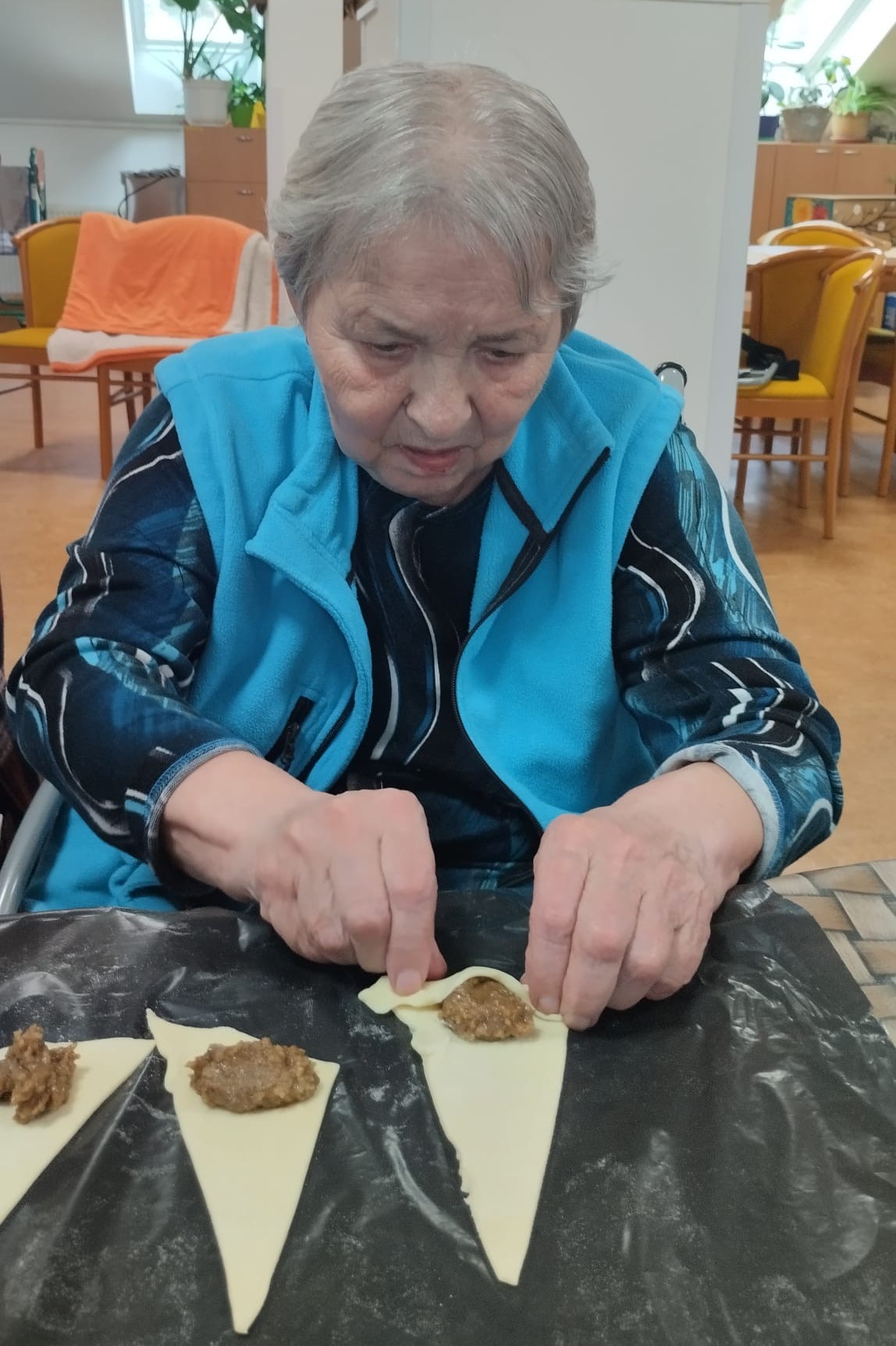 V pondělí 11.listopadu jsme s našimi uživateli na Tančírně pekli svatomartinské rohlíčky. Senioři váleli a plnili těsto náplní, ale také rohlíčky zamotávali a ukládali na plech. Nakonec rohlíčky potřeli máslem a šup s nimi do trouby. Po upečení je společně ochutnali a shodli se, že se jim velmi povedly.