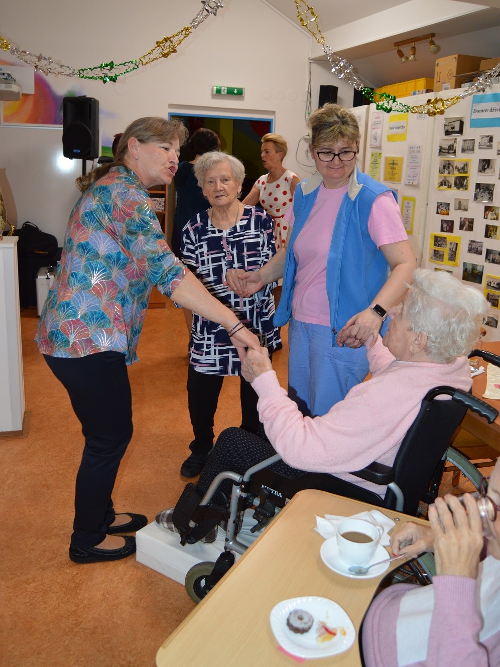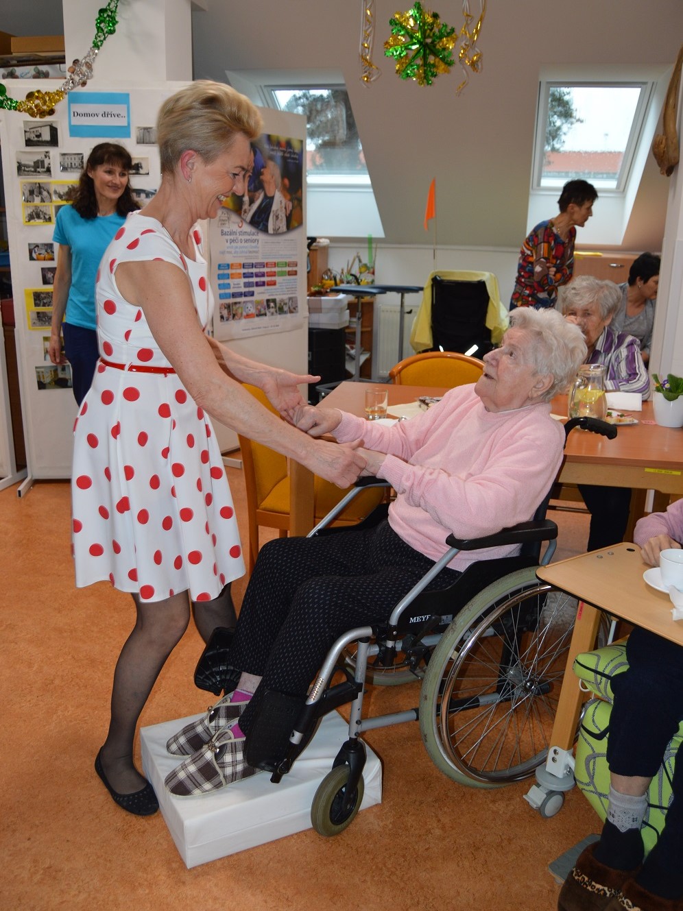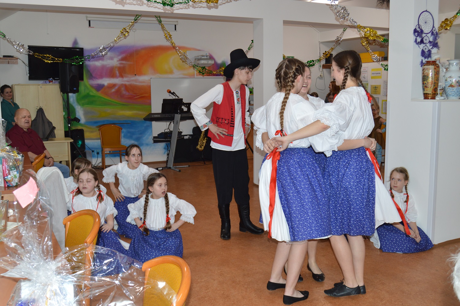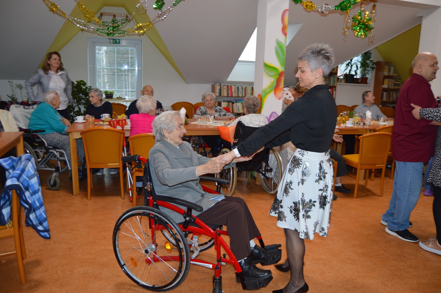 Dne 30.3. se naši uživatelé konečně dočkali po dlouhých třech letech tradičního plesu v Domově. Pracovnice pomohly uživatelům s úpravou a oblečením a doprovodily je do vyzdobené Tančírny. Čekalo tam na ně bohaté občerstvení z naší kuchyně a tombola, která byla plná balíčků ze sponzorských darů, za které dárcům velmi děkujeme. Štěstí a šťastnou ruku při výběru losu v tombole měli všichni uživatelé, každý uživatel vyhrál balíček. Klienti si ples velmi užívali, šlo to vidět na jejich usměvavých tvářích. Někteří si užívali přítomnost svých blízkých, další si prozpěvovali známé písně, o které nebylo nouze a někteří uživatelé si i zatancovali. Jako zpestření podvečera přijal pozvání taneční soubor Lentilky z Mankovic, který pro naše uživatele vystoupil zcela zdarma. Při té příležitosti předaly tanečnice dárek bývalé ředitelce školky z Mankovic paní K.Č., která byla z jejich krásných vystoupení velmi dojatá. Velmi děkujeme za jejich krásné a působivé vystoupení. Ples se chýlil ke konci a klienti se spokojeně vraceli do svých pokojů s pozitivními zážitky a už teď se těší na další akci. Děkujeme pracovníkům za přípravu plesu.