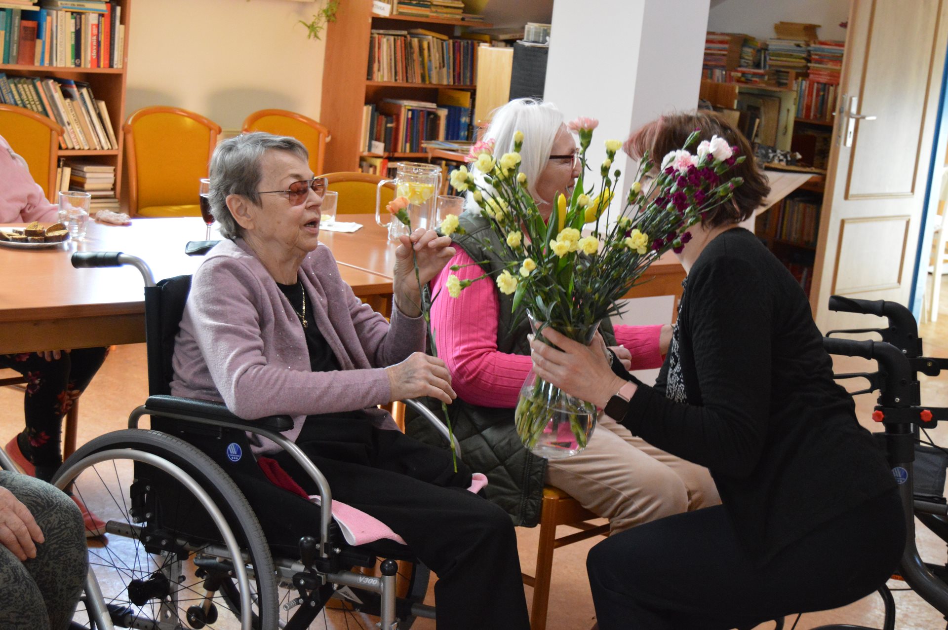 Dne 10.března naše uživatele čekalo veselé dopoledne při poslechu známých písniček v podání pana Piskoře doprovázené hraním na harmoniku. Uživatelé se sešli při příležitosti svátku MDŽ a společně si zazpívali, někteří i zatancovali a k tomu si dopřávali skleničku vína a drobné občerstvení. Na konec všem zúčastněným ženám paní ředitelka popřála k svátku a předala jim kytičku. Uživatelé si dopoledne velmi užili.