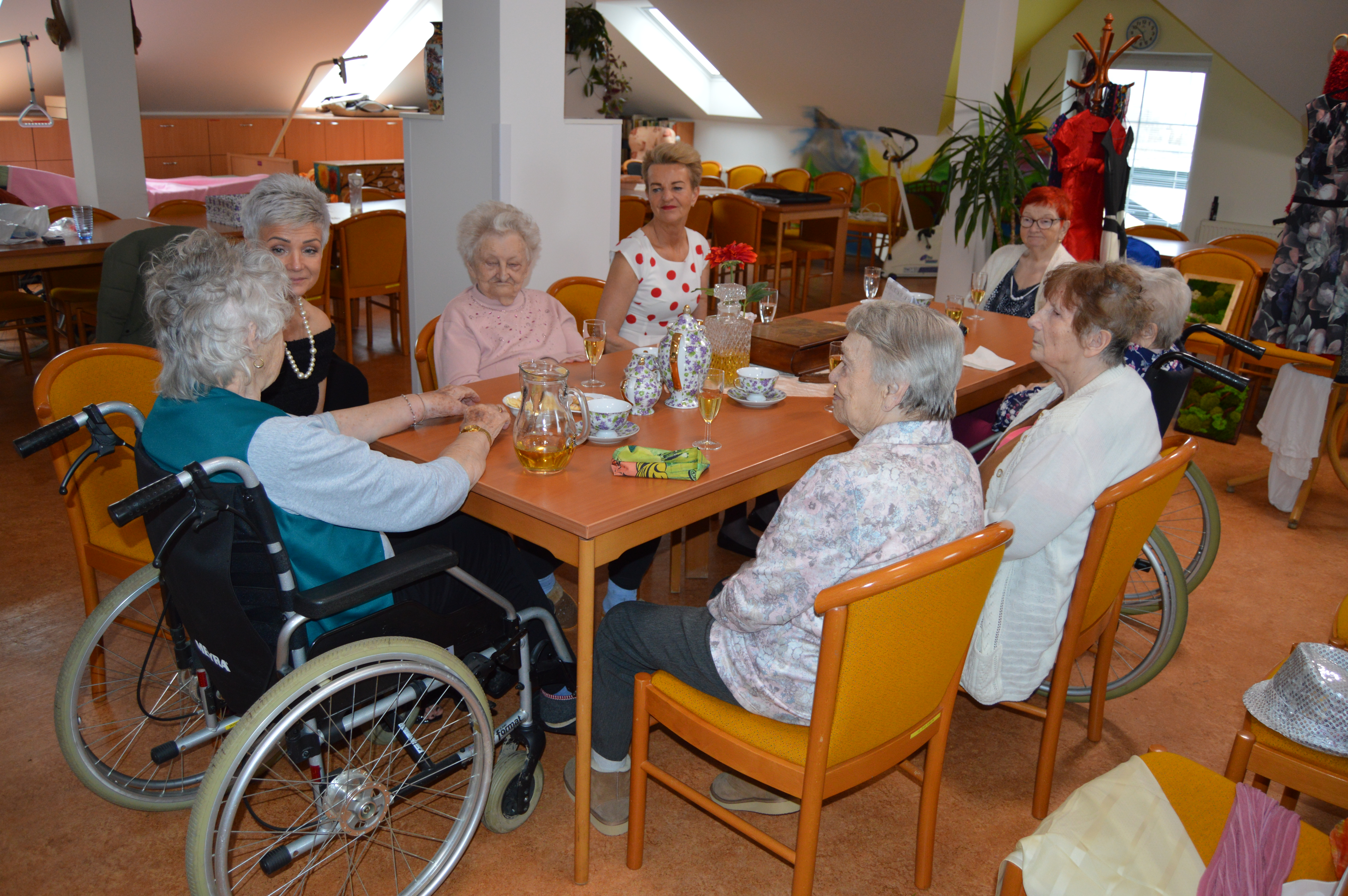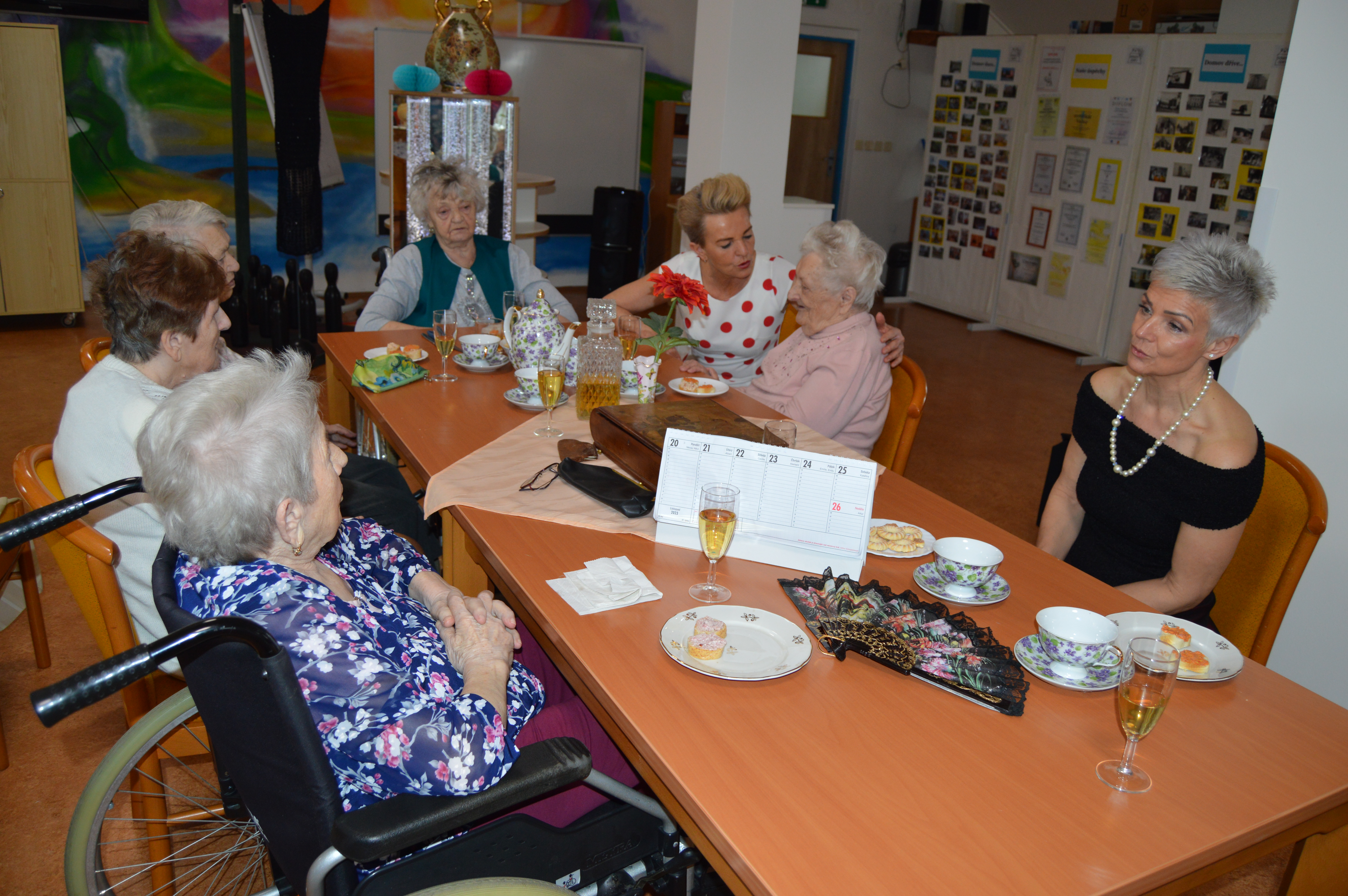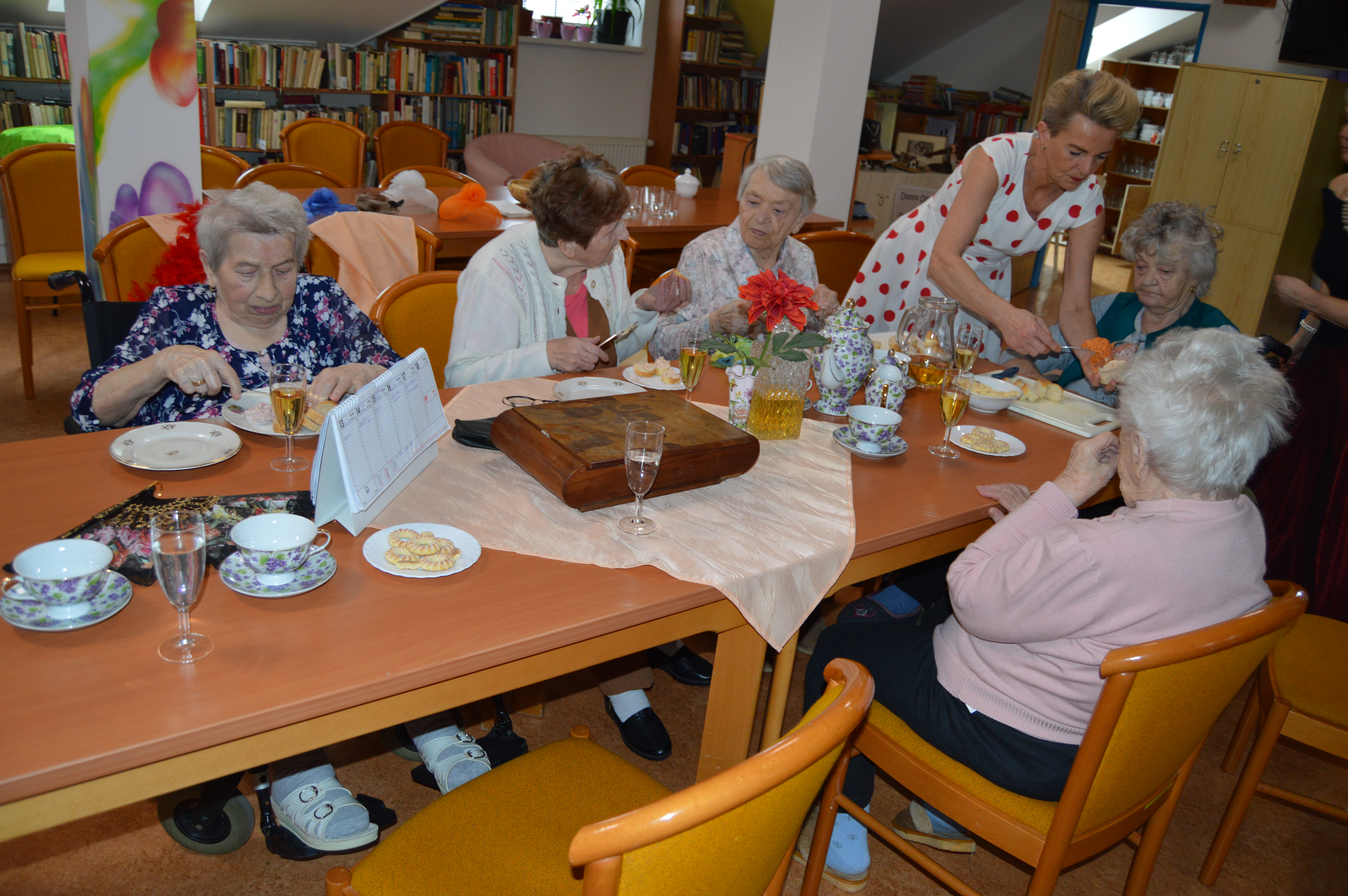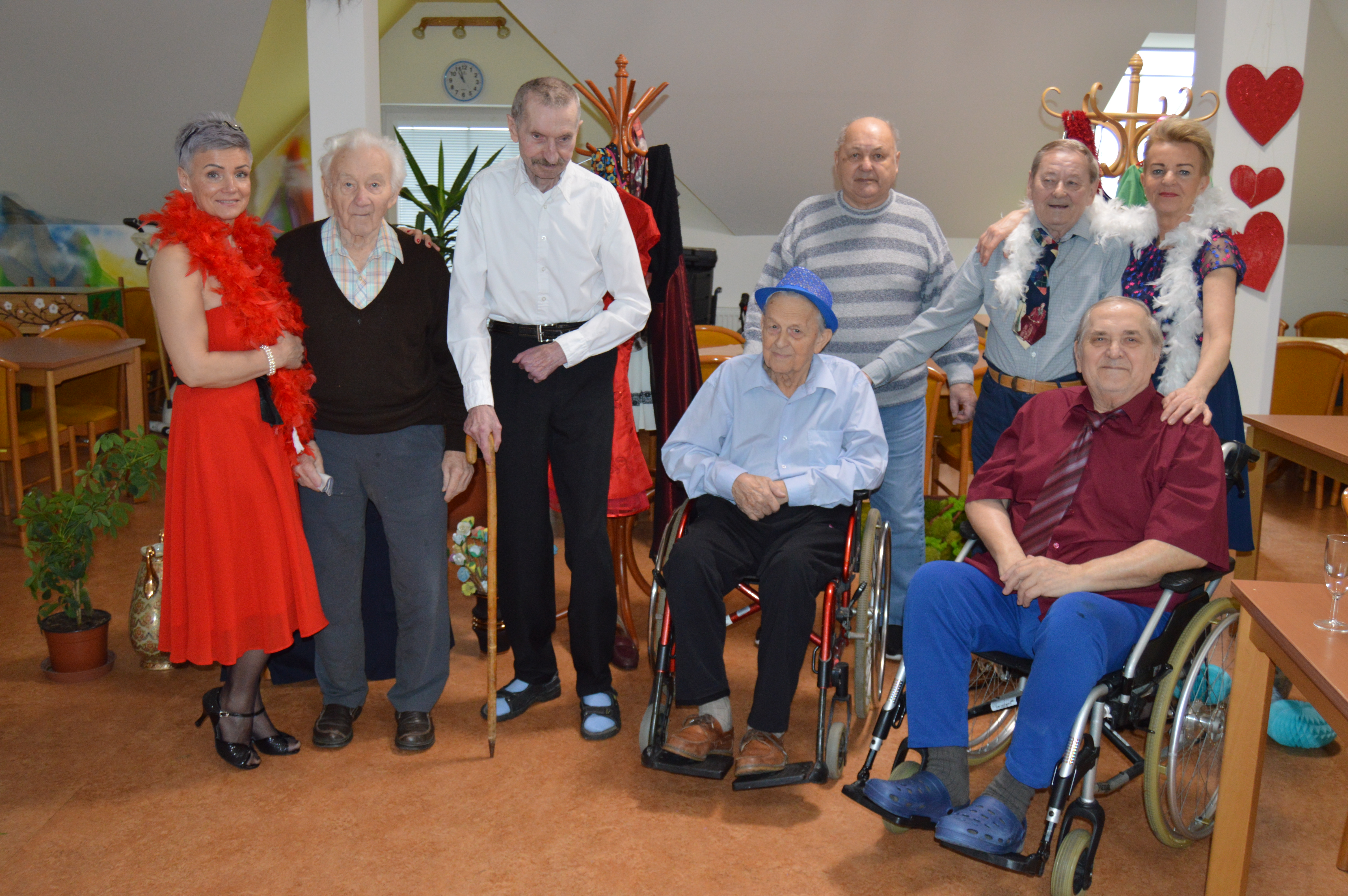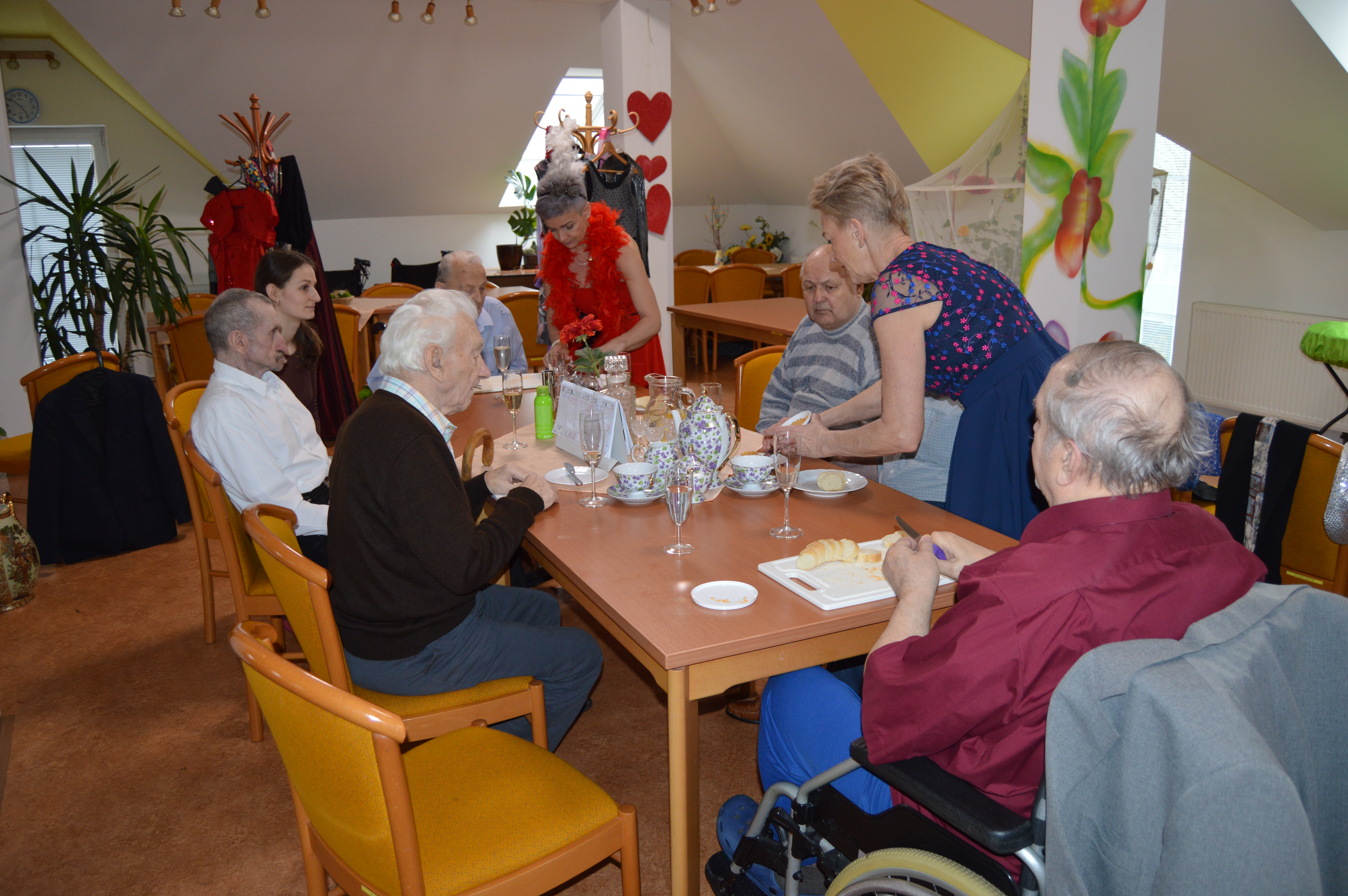 Před blížícím se tradičním plesem v Domově pro uživatele a jejich blízké si naše animační pracovnice připravily pro klienty reminiscenci na téma plesová sezóna. Akci udělaly hned na dvakrát, jednou se sešly jen s uživatelkami a poté zase jen s uživateli. Všichni se hodili do gala a při sklence vína a poslechu hudby si zavzpomínali na dobu, kdy vyrazili poprvé na ples, jak se oblékli, s kým se tam vydali, co se hrálo, jedlo, pilo a jestli tancovali. Všichni se rozvyprávěli s úsměvem na tváři, někteří na sebe prozradili dost zajímavé historky. Poté si i procvičili jemnou motoriku rukou nachystáním tradičních jednohubek s pomazánkou a klobáskou a pánové navíc ukázali, jak si uměli sami uvázat kravatu. Všem se dopoledne velice líbilo a všichni už se nemohou dočkat plesu.
