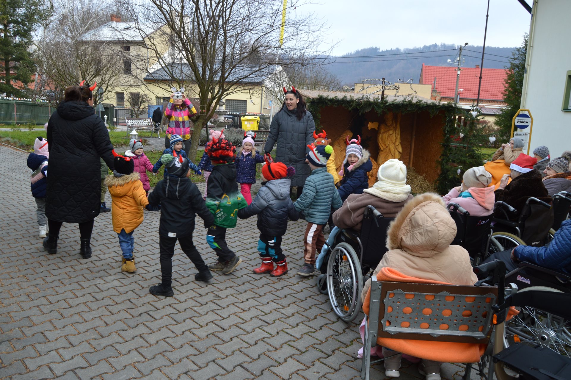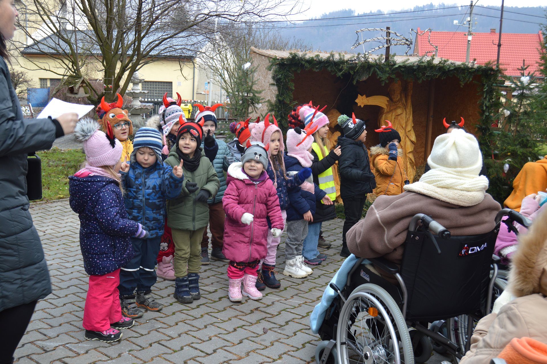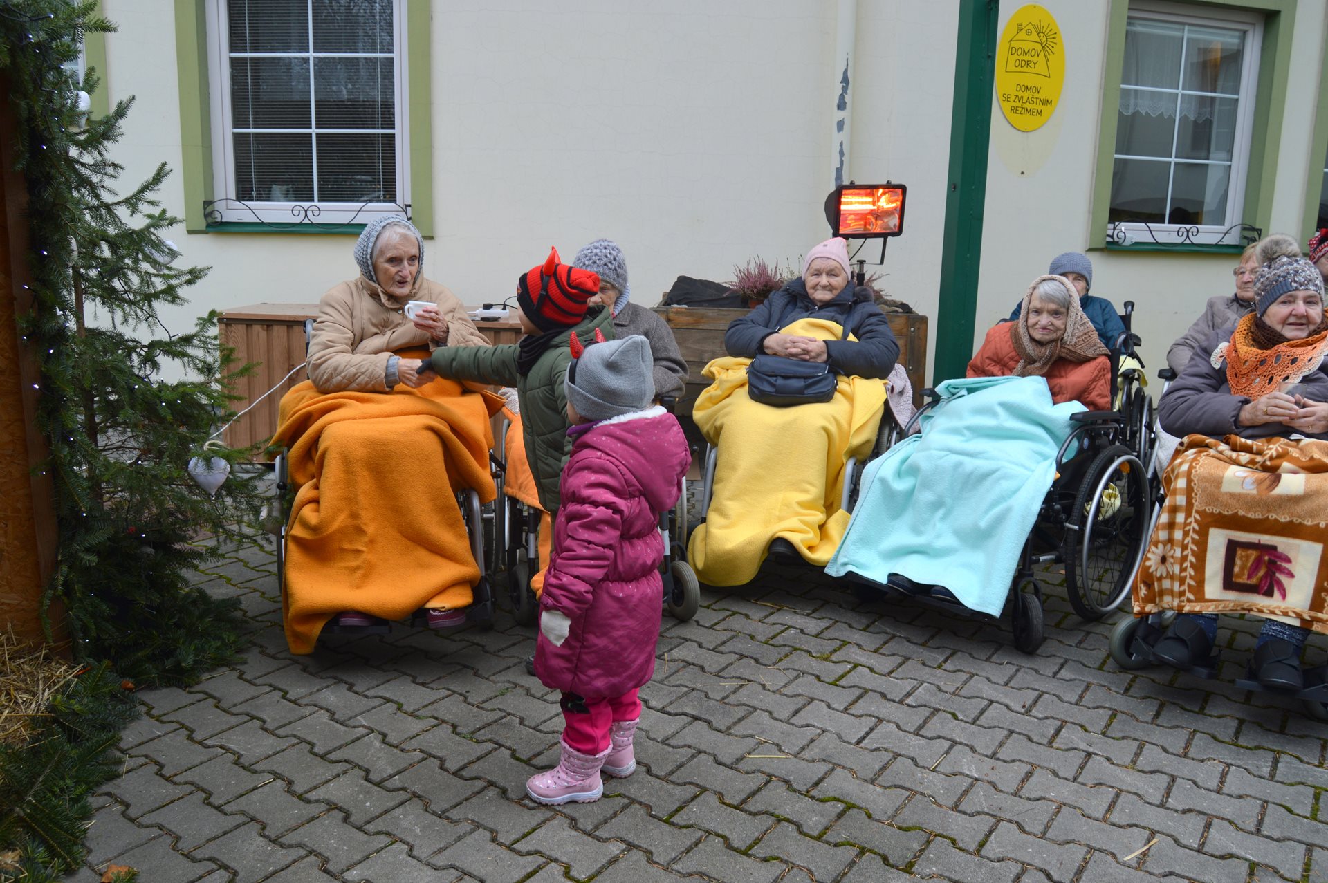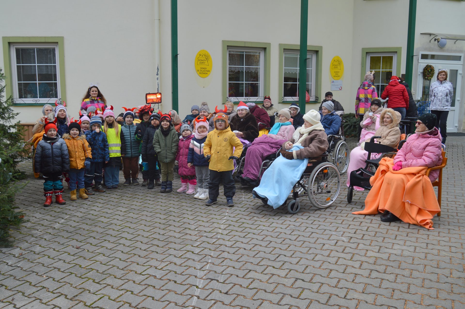 Ve čtvrtek 5.12. se v Domově konalo rozsvícení betlému. Uživatelé se společně sešli před Domkem, vychutnávali si výborný punč a užívali si chvíli na čerstvém vzduchu. K radosti seniorů nás přijeli potěšit děti z místní Mateřské školky. Děti uživatelům zazpívaly vánoční koledy, zarecitovaly básničky a zatancovaly. Pro děti bylo přichystáno drobné občerstvení, na které se s radostí vrhly. Na závěr se rozsvítil betlém a pořídila se společná fotka na památku.