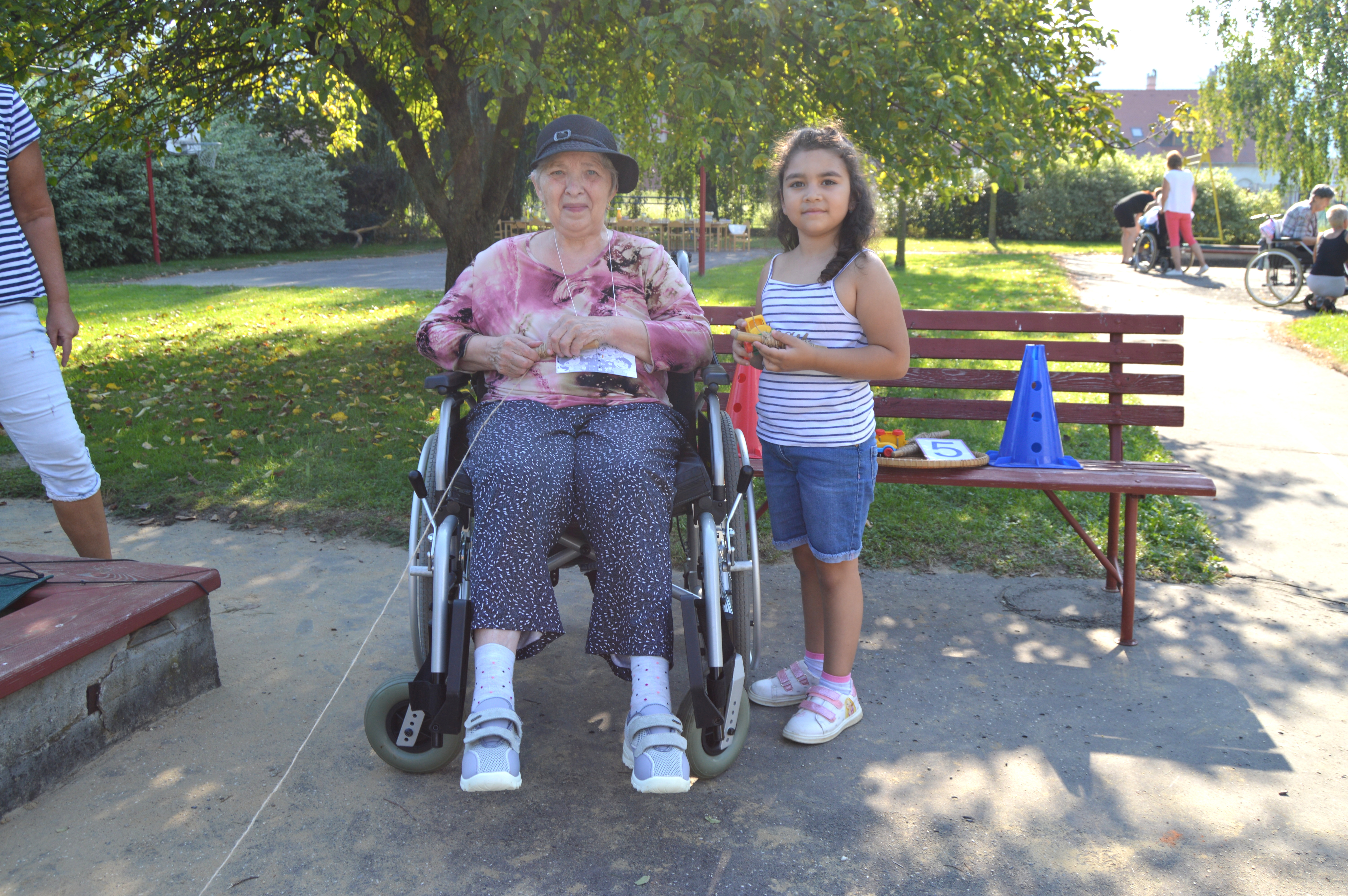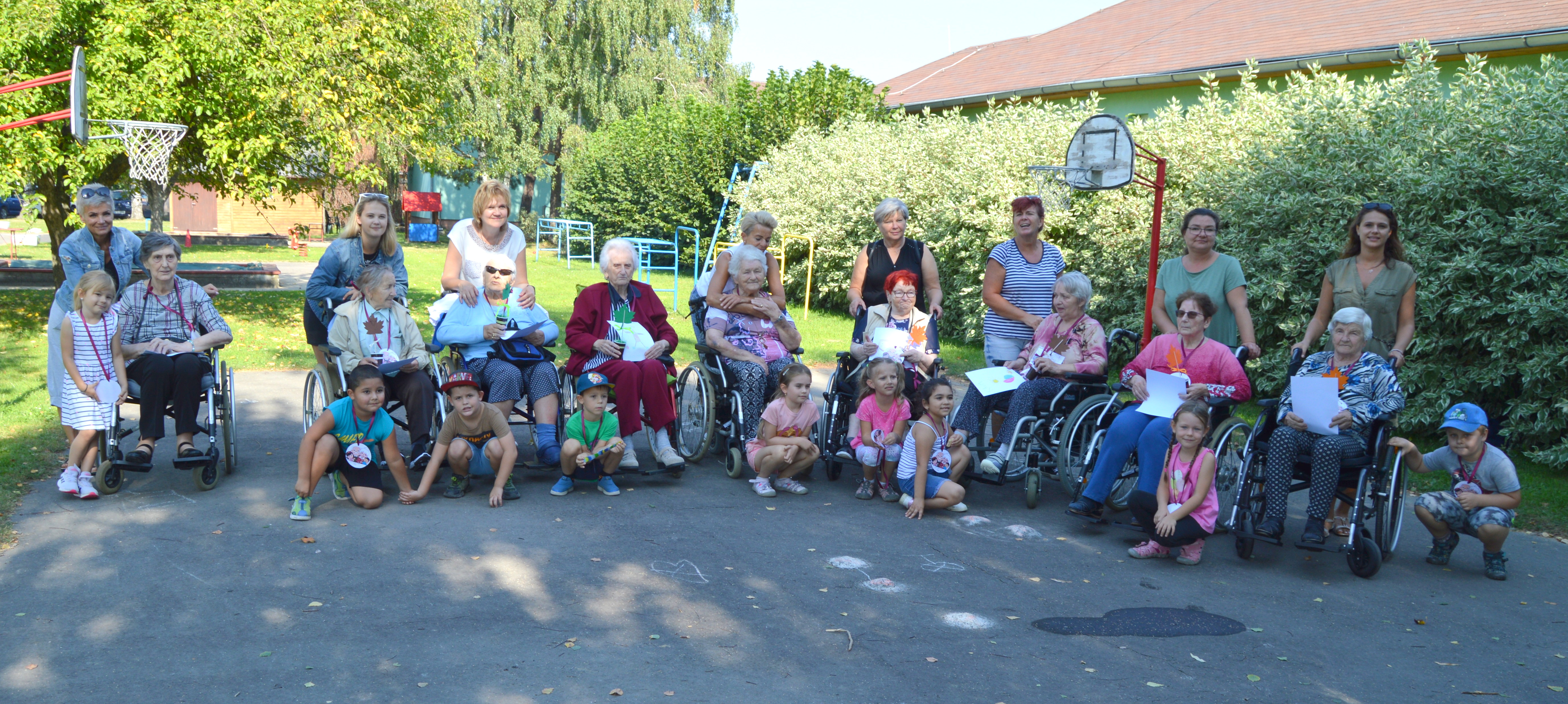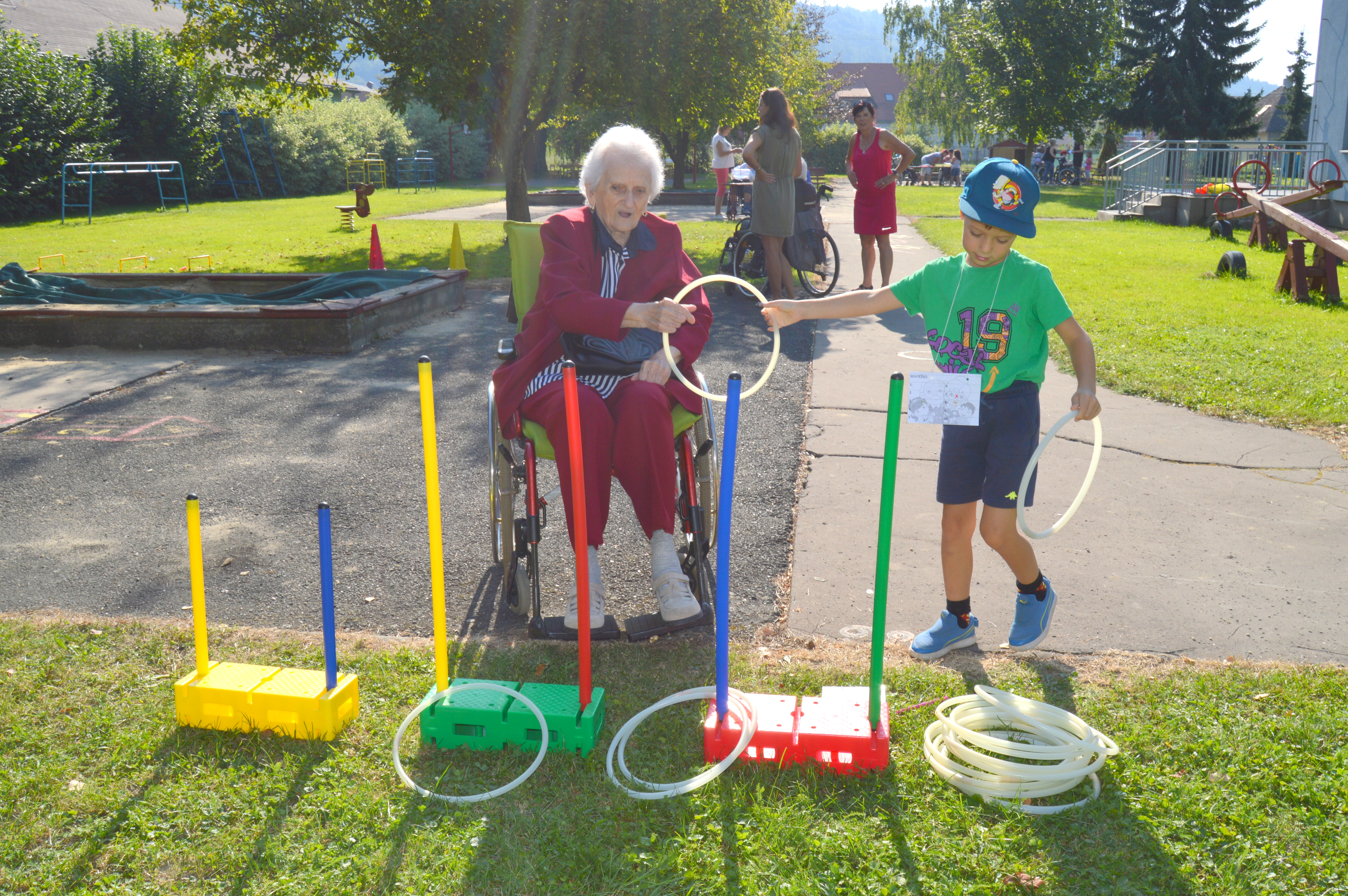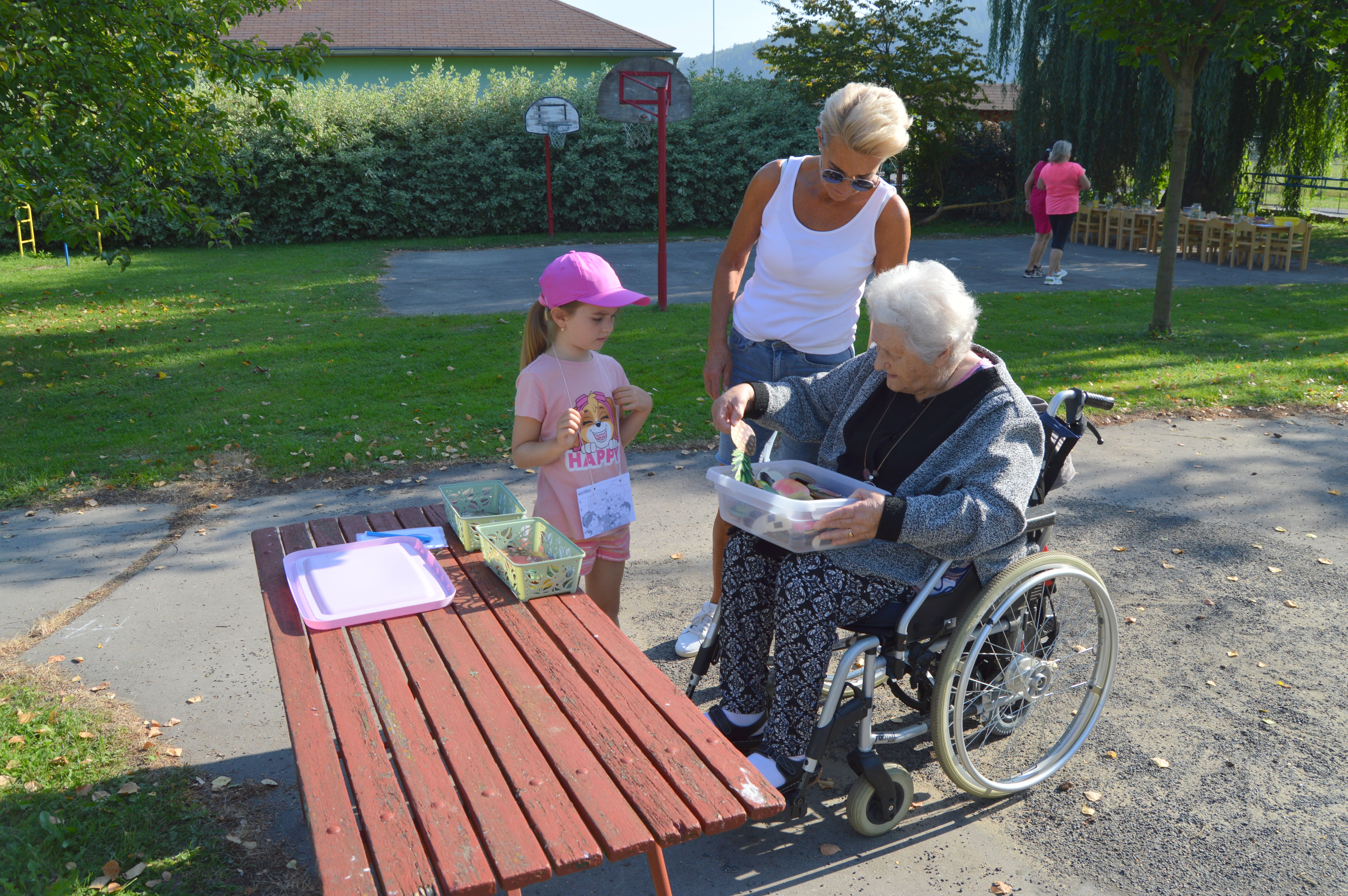 Ve středu 13.9. jsme se s našimi uživatelkami vydaly do Mateřské školy Čtyřlístek v Odrách, kde pro ně a děti bylo zorganizováno sportovní dopoledne. Naše seniorky se už shledání s dětmi nemohly dočkat. Při příjezdu ke školce jsme už z dálky viděly natěšené děti, jak na nás netrpělivě čekají, aby si s námi užily dopoledne plné her. Zpočátku se děti s našimi seniorkami pozdravily, poté se rozdělily do týmů, kde tým vždy tvořila jedna seniorka a jedno dítě. Dvojice se pustily do realizace společných úkolů. Jako například společné zpívání známé písničky, kreslení prstem na záda, poznávání obrázků ovoce a zeleniny, skládání puzzlí, házení kroužků a mnoho dalších. Byla radost sledovat naše klientky společně s dětmi, jak se snaží všechny úkoly poctivě plnit. Jak měli všichni splněno, tak se společně vrhli na bohaté pohoštění, které bylo přichystáno. Na závěr každé dítě předalo malý dáreček svému spoluhráči a následně i děti dostaly malou pozornost od svých učitelek a od nás z Domova balík bonbónů. Všichni přítomní si dopoledne velmi užili. Děkujeme učitelkám Mateřské školy za pozvání a organizaci akce. Budeme se těšit na příští shledání.