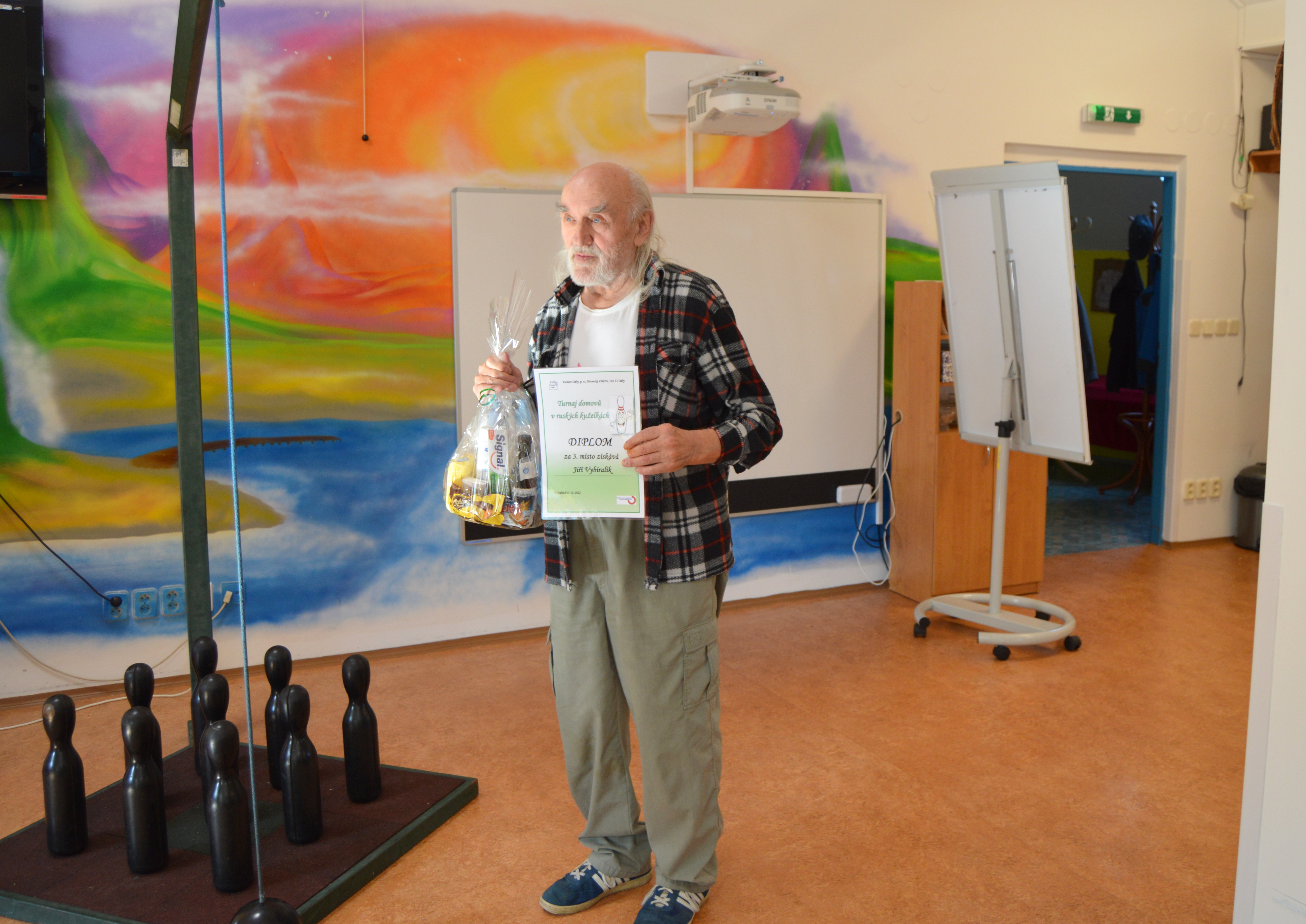 Nakonec se na 1. a 2. místě umístili uživatelé Domova Letokruhy a na 3. místě uživatelé Domova Korýtko. Vyhodnoceno bylo i pořadí týmů, 1. místo získalo Letokruhy, 2. místo Korýtko, 3. místo Domov Odry a 4. místo Denní stacionář Odry. Vítězové turnaje na prvních třech místech obdrželi ceny. Vítězný tým si odvážel společnou cenu a krásný dort. Ani ostatní uživatelé nepřišli zkrátka, každý si odnášel malou pozornost. Dopoledne se vydařilo a budeme se opět těšit na příště, není důležité vyhrát, ale zúčastnit se a společný čas si užít.