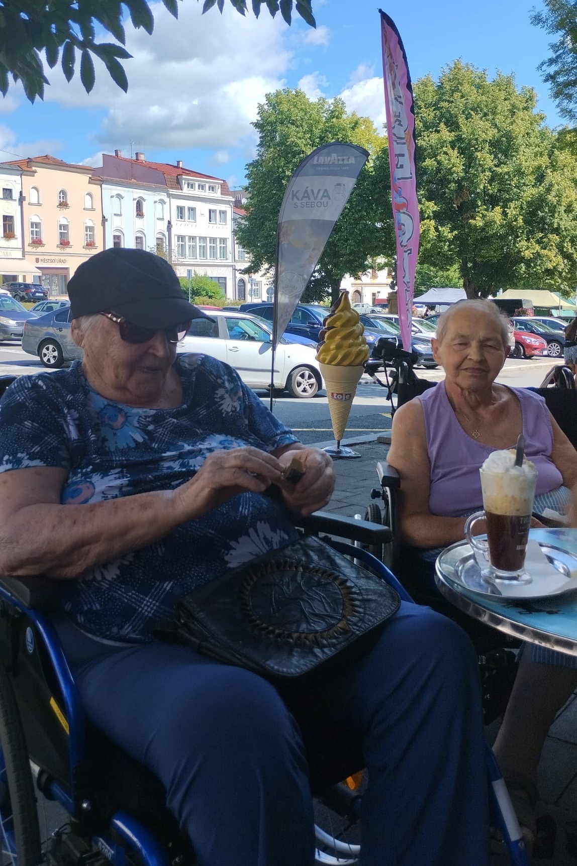 V teplých letních dnech vyrážejí pravidelně naše pracovnice s uživateli na vycházky do města, kde s nimi projdou obchody a uživatelé si tak mohou nakoupit, co potřebují nebo si jdou sednout v místní cukrárně, pochutnají si na točené zmrzlině, kávičce, zákusku nebo pivu. Užijí si tak slunečné dopoledne.
