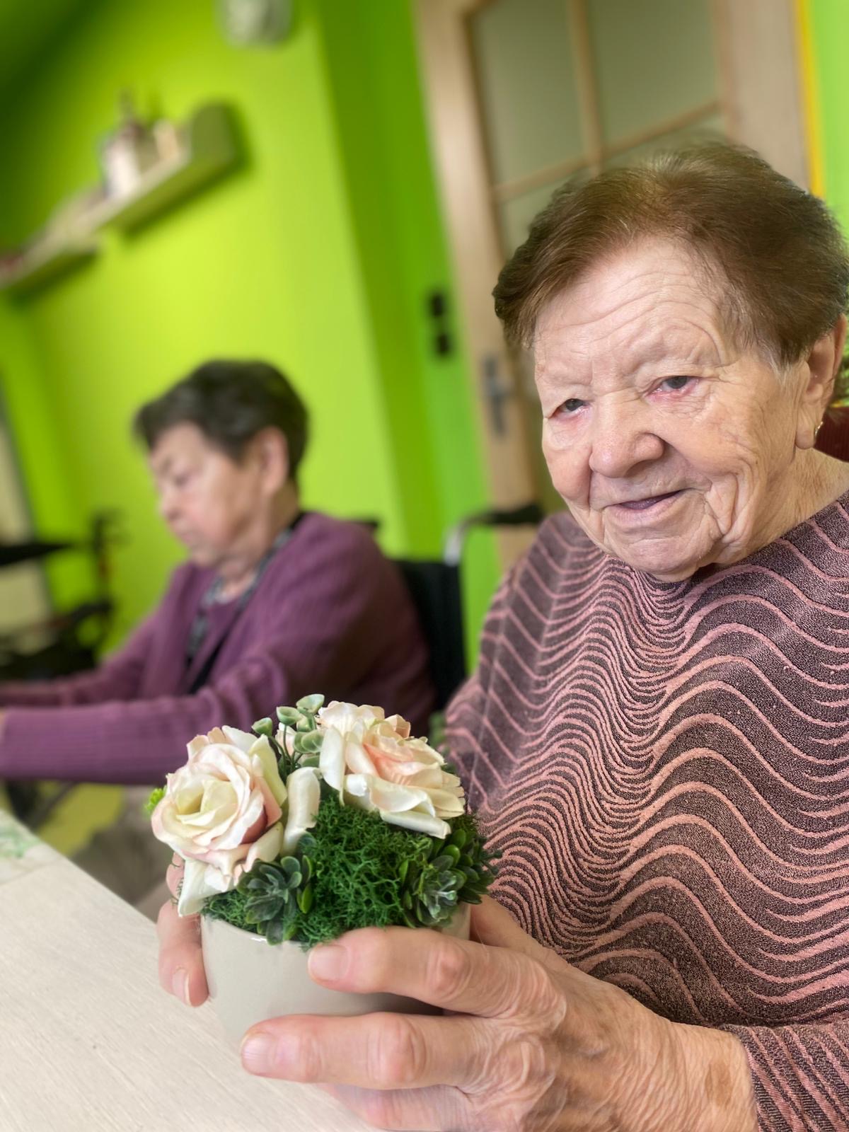 V úterý 17. února jsme se společně sešly při tvořivé aktivitě zaměřené na výrobu květinové výzdoby do naší jídelny. Panovala příjemná a veselá atmosféra a všechny účastnice se s chutí pustily do práce. Uživatelky vpichovaly do aranžovací hmoty různé kytičky, sukulenty a také umělý mech. Každá mohla zapojit svou fantazii a vytvořit si vlastní originální kompozici. Tvoření bylo velmi zábavné a přineslo všem radost i příležitost k milému povídání. Výsledkem jsou nádherné misky plné barev a přírodní krásy. Každá z nich je jedinečná a odráží kreativitu své autorky. Hotové květinové dekorace nyní zdobí naši jídelnu a zpříjemňují prostředí všem, kteří ji navštěvují.