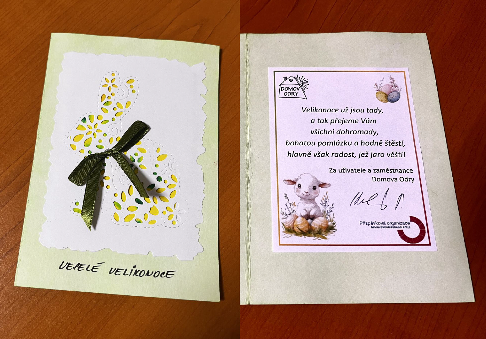 Blíží se Velikonoce a naše pracovnice s uživateli během druhé poloviny března vyráběli velikonoční přáníčka, která se následně posílají našemu zřizovateli a firmám, se kterými během roku spolupracujeme. Přáníčka se jim velmi povedla.