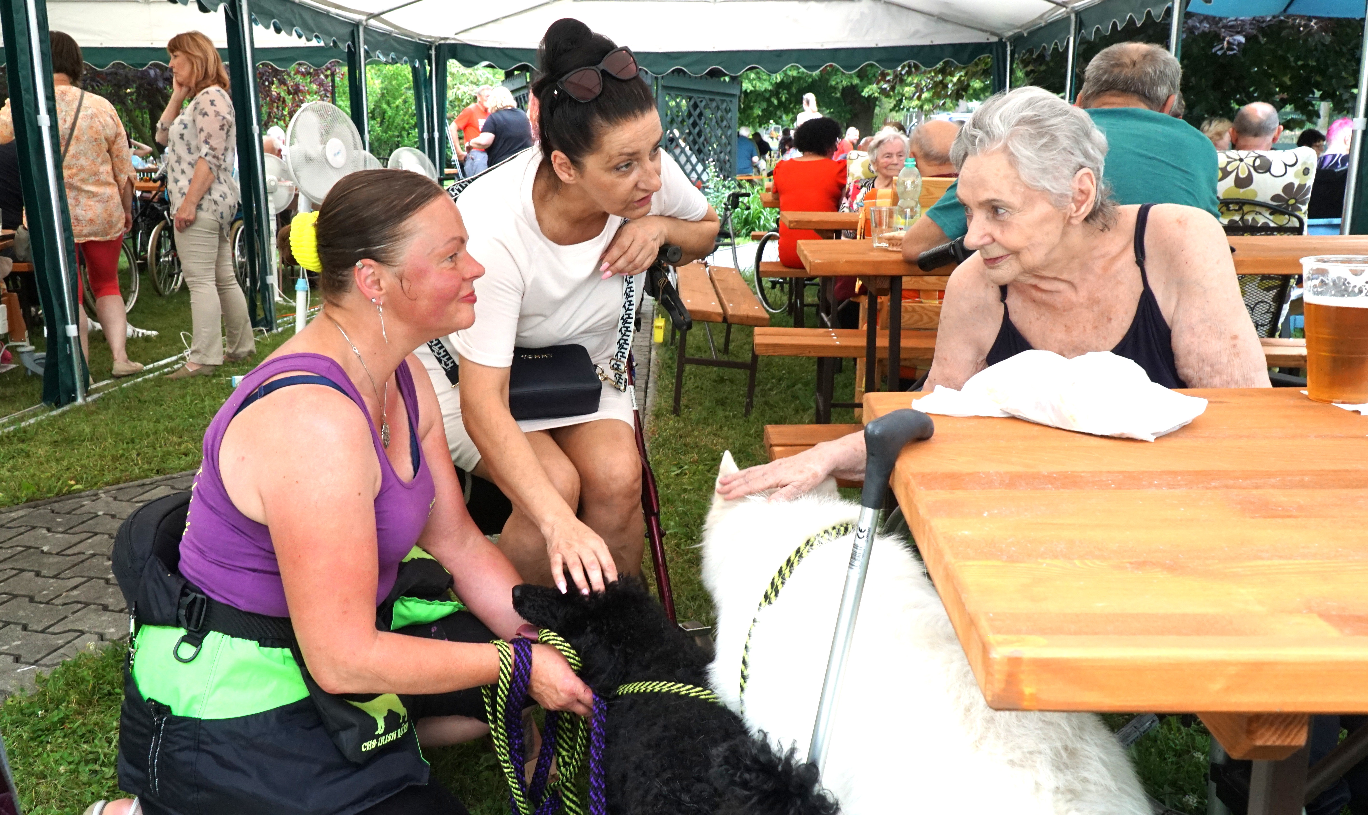 Nálada byla výborná, Všichni se skvěle bavili, pochutnávali si na dobrotách z domovské kuchyně. Zažehnat žízeň mohli čepovaným pivem nebo vínem z jižní Moravy. Velkou radost měli všichni z přítomnosti canisterapeutek paní Ireny Levové a slečny Karolíny s jejich fenkami, uživatelé a návštěvníci si je mohli dostatečně pomazlit a vyfotit se s nimi. Ukázky svých dovedností předvedl kroužek mažoretek a kroužek aerobiku z oderského Střediska volného času. Jejich vystoupení se velmi líbilo.